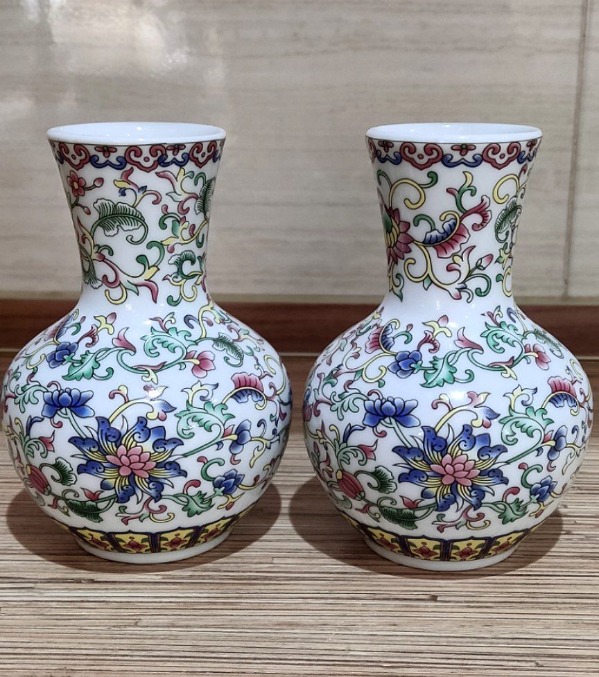 گلدان چینی جفت مینیمال گل برجسته
